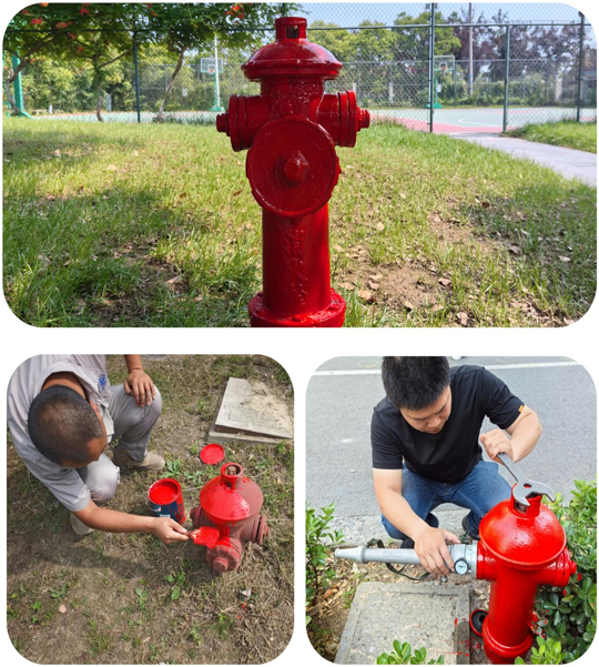 為及時高效完成消火栓翻新工作,工作人員迅速行動,選用材料,攜帶鐵刷、鋼絲球、扳手和油漆,小心拆開消防栓,細心清除銹跡,認真打油上漆,給區(qū)域內(nèi)的消火栓進行除銹打油穿“新衣”,確保消防設(shè)施正常有效使用。同時,針對消防栓啟閉閥是否靈活、悶蓋內(nèi)膠圈是否完整、消防栓零部件是否有損壞缺失、水壓是否正常等情況,進行了現(xiàn)場測試并做好登記和維修,以確保消火栓的安全完整。
