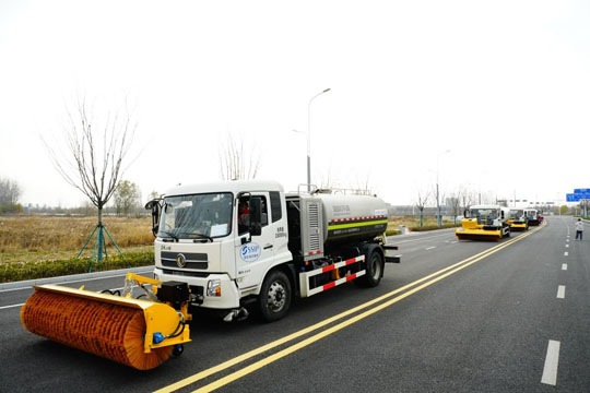 此次演練活動在園區(qū)復(fù)旦路和紫金山路現(xiàn)場展開,模擬宿遷地區(qū)寒潮大雪天氣下的道路掃雪除冰應(yīng)急處置。隨著現(xiàn)場指揮一聲令下,演練正式拉開帷幕。所有人員及各類掃雪除冰設(shè)備迅速抵達(dá)指定位置,嚴(yán)格按照“雪前準(zhǔn)備、預(yù)警發(fā)布、應(yīng)急啟動”的流程展開作業(yè)。演練以機(jī)械除雪為主,人工清理為輔,多臺撒布機(jī)、雪滾車、雪鏟車等專業(yè)設(shè)備輪番上陣,在模擬的冰雪場景中高效進(jìn)行清雪和除冰作業(yè),全面檢驗(yàn)了應(yīng)急預(yù)案的科學(xué)性和實(shí)操性。