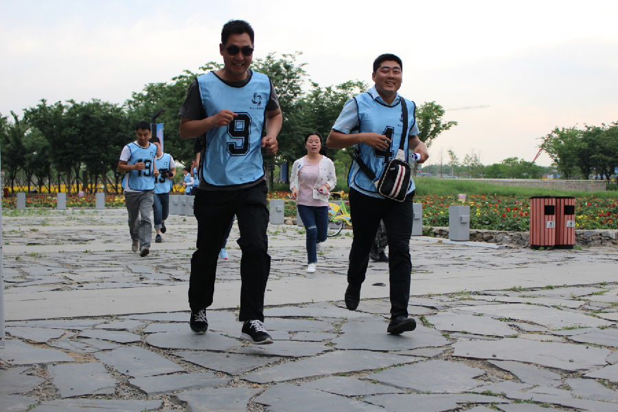 烈日炎炎,隨著“東方不敗、永遠(yuǎn)不敗”和 “屠龍隊(duì)、專治不敗”口號吶喊,兩支斗志昂揚(yáng)的隊(duì)伍踏上三臺(tái)山尋寶征途。在指導(dǎo)教官的監(jiān)督下,按照尋寶秘籍的指引,隊(duì)員們?nèi)翰呷毫Γ群笸瓿伞凹w跳躍合拍”、“征集十二個(gè)陌生人合影”、“募集五十元”等寓意深刻的團(tuán)隊(duì)合作任務(wù)。尋寶全程7公里,在到達(dá)終點(diǎn)前路程中,隊(duì)員們體能已經(jīng)達(dá)到極限,但沒有一個(gè)人掉隊(duì),大家相互扶持,沖刺到了終點(diǎn)。